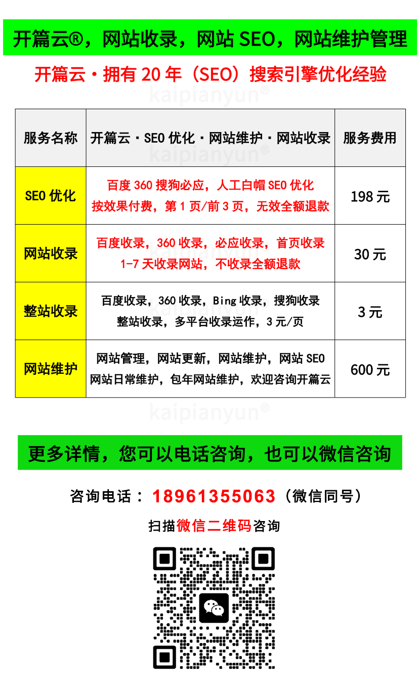 開篇云SEO優(yōu)化:SEO搜索引擎優(yōu)化提升關(guān)鍵詞排名! 咨詢熱線:18961355063